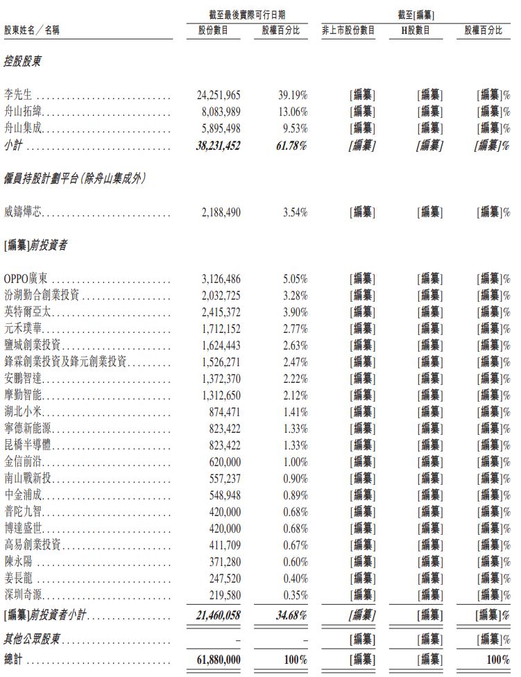 截至2026年1月7日,公司(i)由李先生持有39.19%,及(ii)由舟山拓緯及舟山集成分別持有13.06%及9.53%,而其均由李先生作為其普通合伙人最終控制。