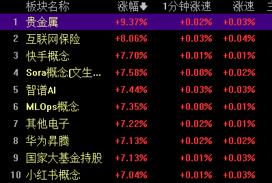 從盤面來看,市場呈現(xiàn)普漲格局,其中貴金屬、互聯(lián)網(wǎng)保險、AI、半導(dǎo)體等概念漲幅居前,僅油氣、煤炭板塊收跌。市場超過5100只個股飄紅,135只個股漲停。
